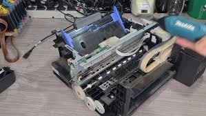 Cabeça de impressão, motores, sensores, cabos flat. |